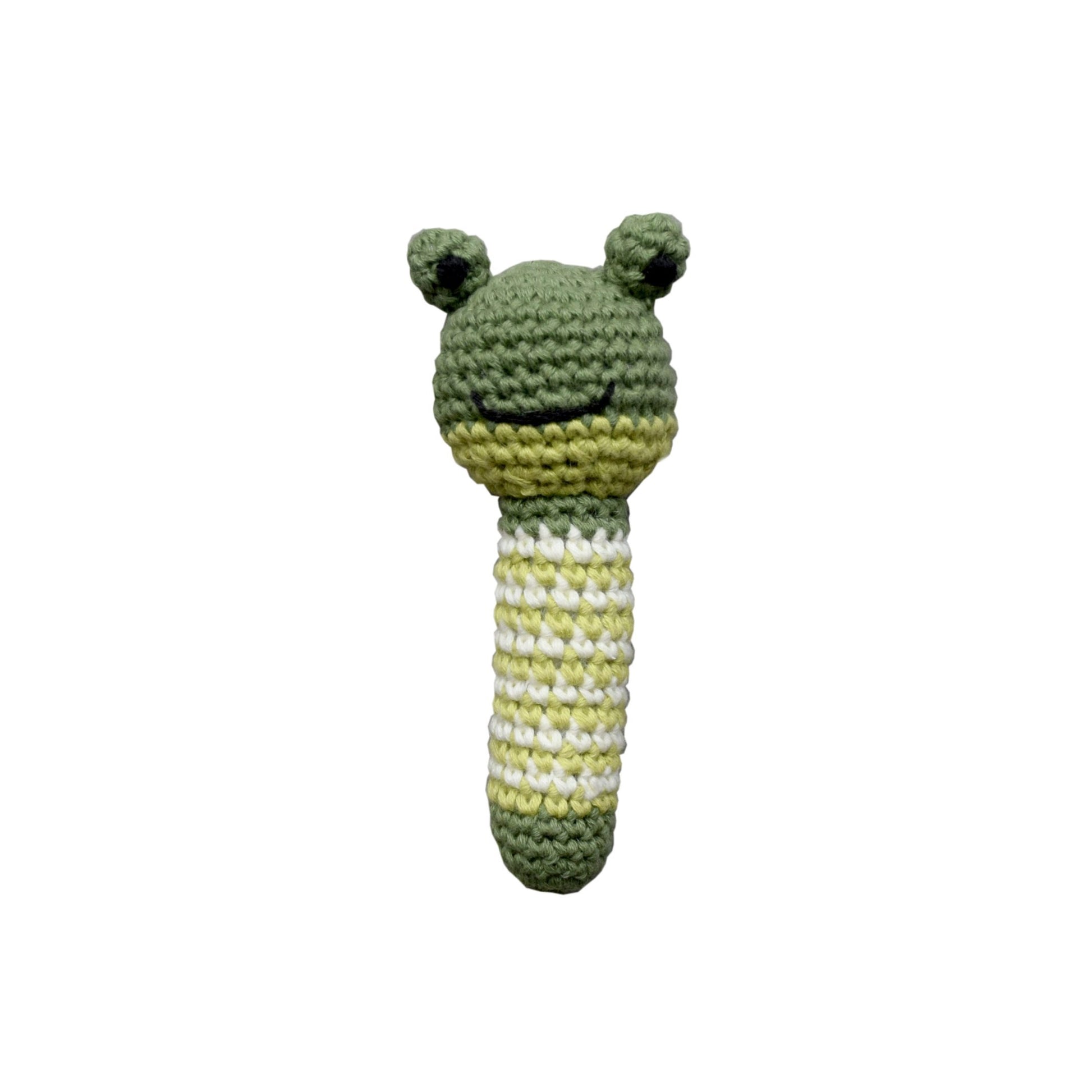 De rammelaar is gehaakt van Oeko-tex gecertificeerd katoengaren en gevuld met rpet (gerecyclede polyester vezel).