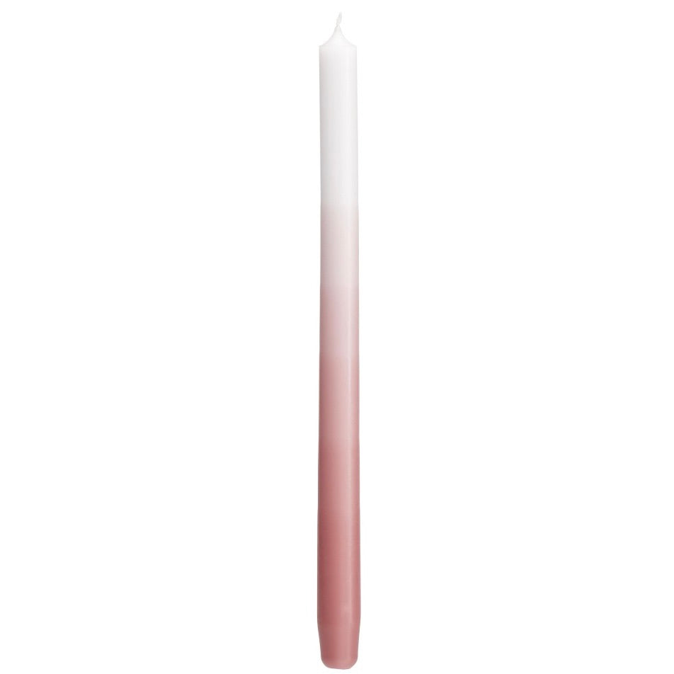 Deze kaars heeft een mooi kleurverloop, van donker naar licht, en eindigt in het wit. Hij is lekker lang en staat prachtig, alleen, of met meerdere exemplaren.
