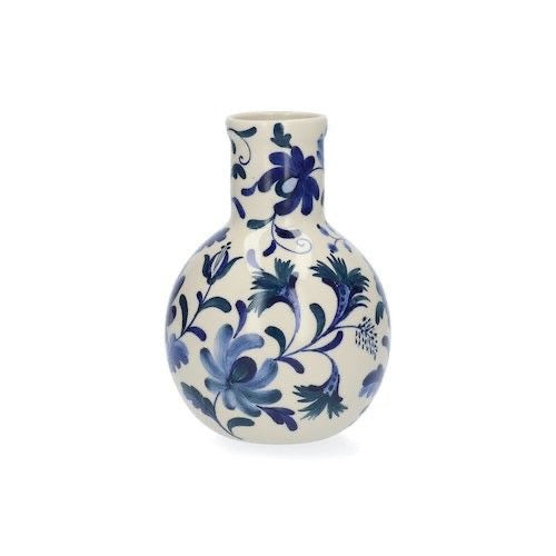 Dit mooie handbeschilderde vaasje met decoratieve bloemenprint is ontworpen door Laura de Monchy. Echt Dutch Design dus! Het bloemenvaasje in blauwtinten is met de hand gemaakt en beschilderd door een groep van 50 ambachtslieden in Thailand. Zij doen dit met liefde en aandacht. Het beschilderen van deze bloemenvaas duurt ongeveer 1,5 uur. De vaas is vervaardigd uit lokale witte klei van hoge kwaliteit. Een uniek kunstwerk, perfect voor jouw interieur.