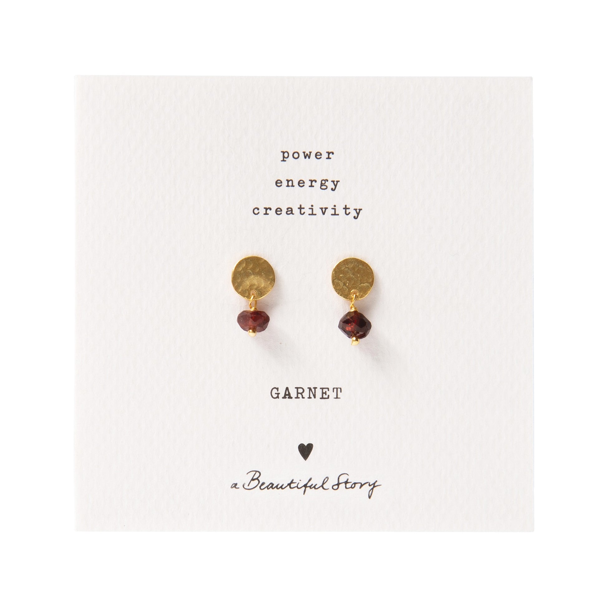 Deze Mini Coin-oorbellen van A Beautiful Story zijn ambachtelijk gemaakt. De kleine oorknopjes bestaan uit een goudkleurig muntje met daaraan een kleine granaat edelsteen.