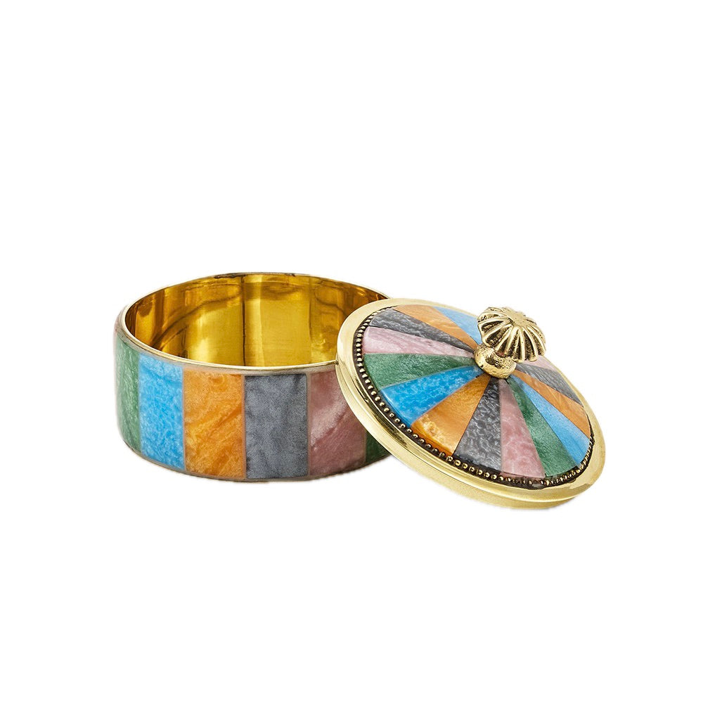 Het Piper Circusdoosje Medium Multi van Doing Goods is een betoverend en kleurrijke opbergaccessoire die een speelse, stijlvolle touch aan je interieur geeft. Gemaakt van 60% gerecycled messing en 40% resin, combineert dit sieradendoosje duurzaamheid met handgemaakte charme.