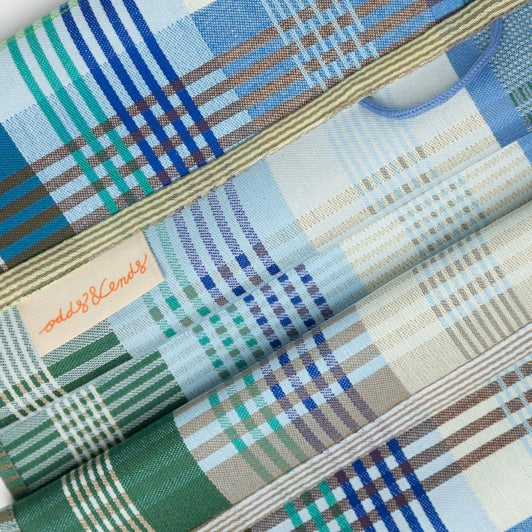 Werken met restmateriaal betekent ook dat de doeken onderling iets van elkaar kunnen verschillen. Tijdens de productie raken de restjes op en worden ze vervangen door vergelijkbare kleuren. Dit verkleint kleine variaties binnen een batch.